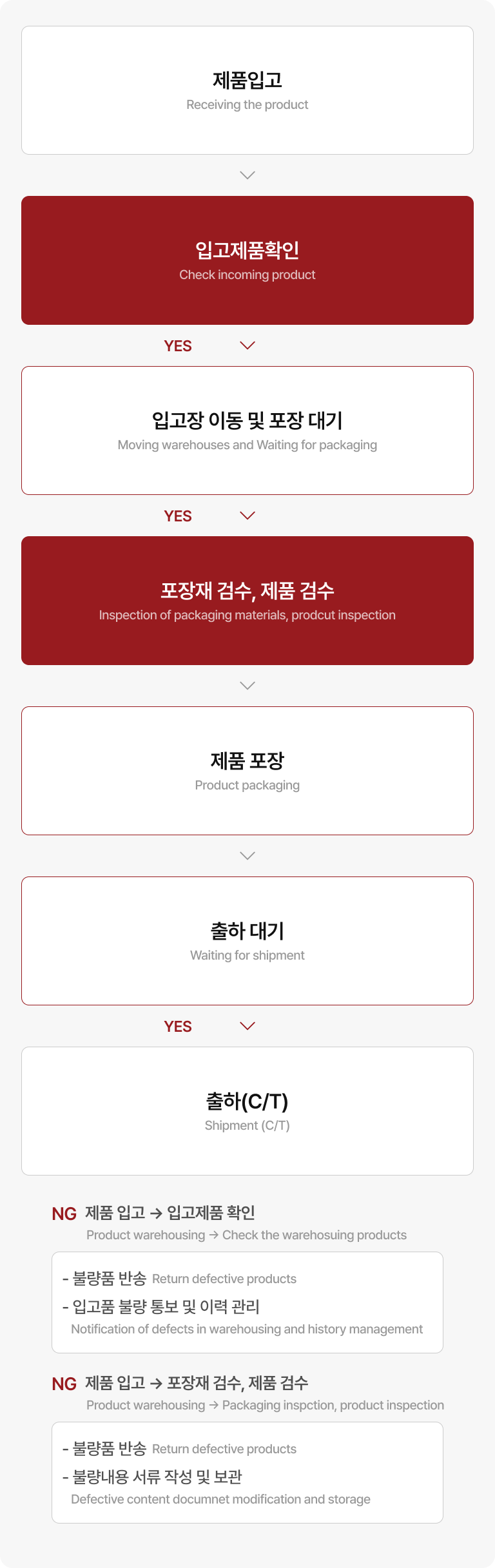 제품 검수(오염, 파손, 변형, 식별표 등)